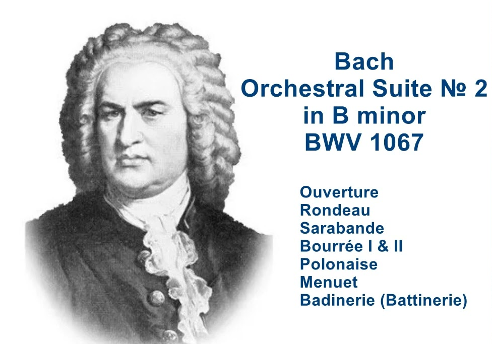 이 「관현악 모음곡 제2번」은 현악 합주에 독주 악기로서 한 개의 플루트를 사용하고 있어 마치 플루트 협주곡과 같은 성격을 가지고 있습니다. 이 곡은 바흐가 플루트의 밝고 명쾌한 성격을 발휘하기 위해 쓰인 것으로 독특한 리듬을 갖는 해학적이고 경쾌한 모음곡으로 되어 있습니다. 이에 따라 끝곡에 지그를 배치하는 것이 관례인데도 바디네리를 두고 있습니다.