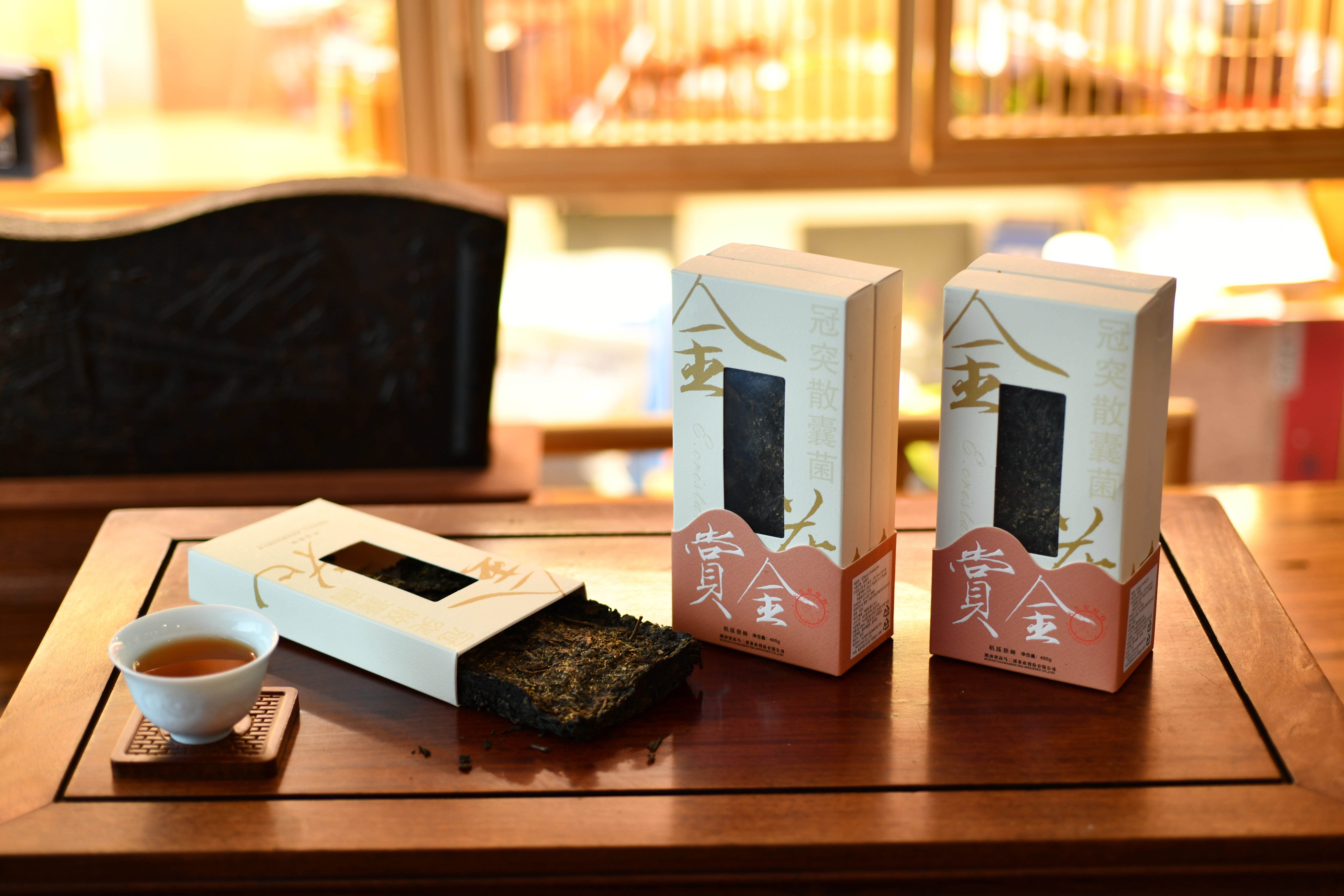 복전차의 압착 공정은 기본적으로 위 두 차와 비슷하지만, 가장 큰 차이는 ‘발화(發花)’, 즉 ‘금화(金花)’의 생성 과정입니다. 금화는 특정 미생물(관돌산낭균, Eurotium cristatum)이 번식하여 형성하는 황금색 포자낭으로, 복전차의 품질을 결정짓는 핵심 요소입니다.