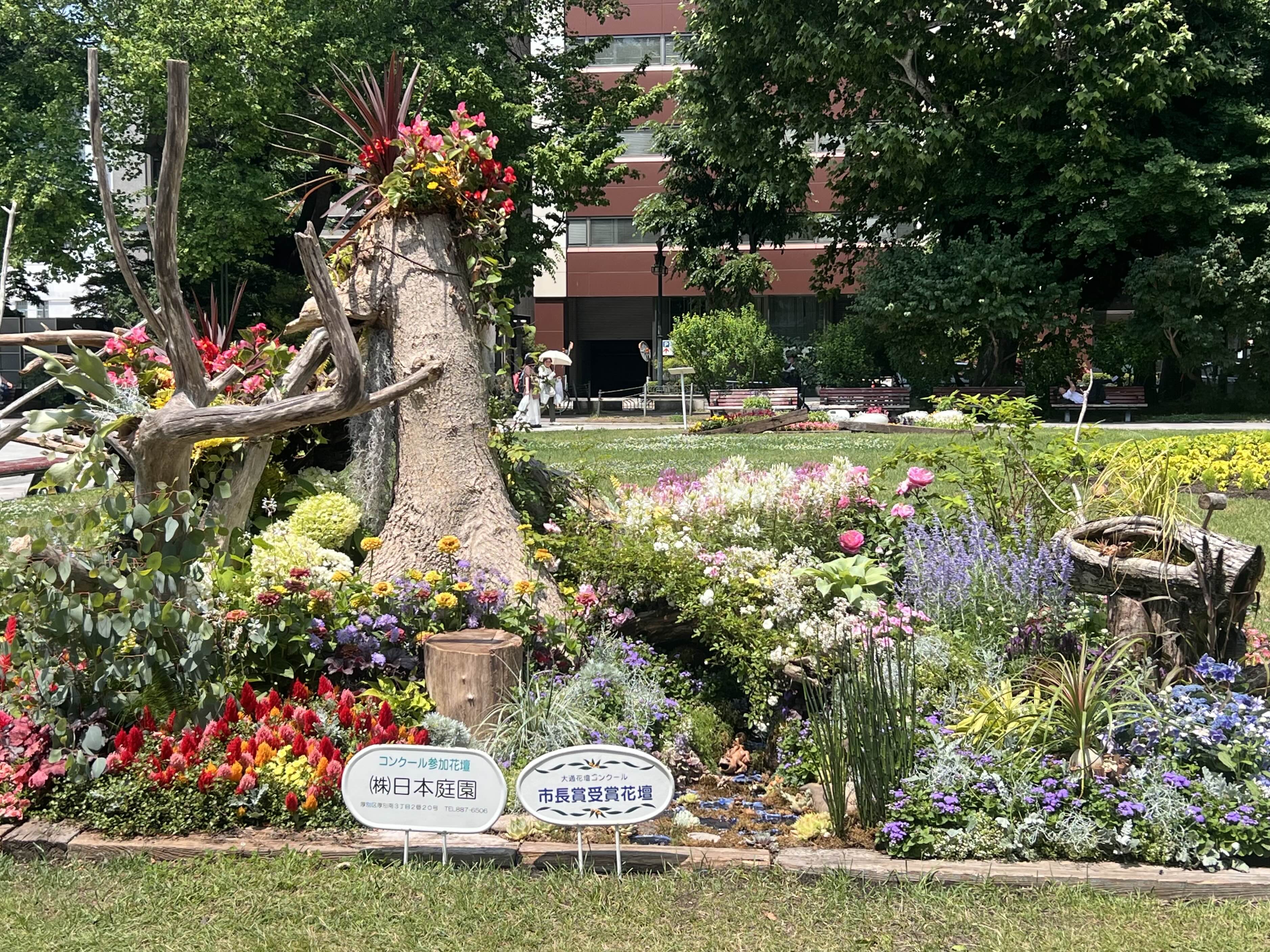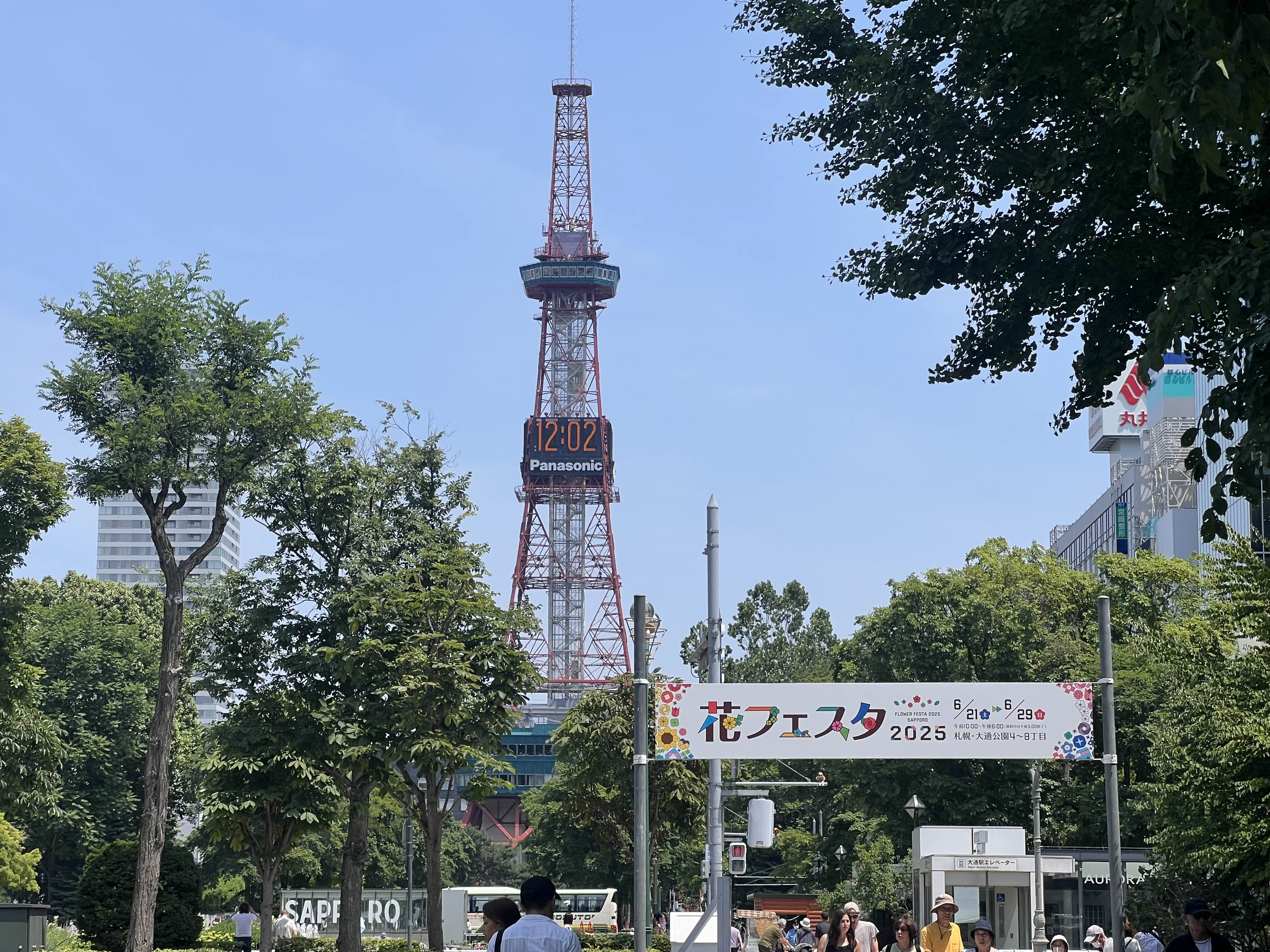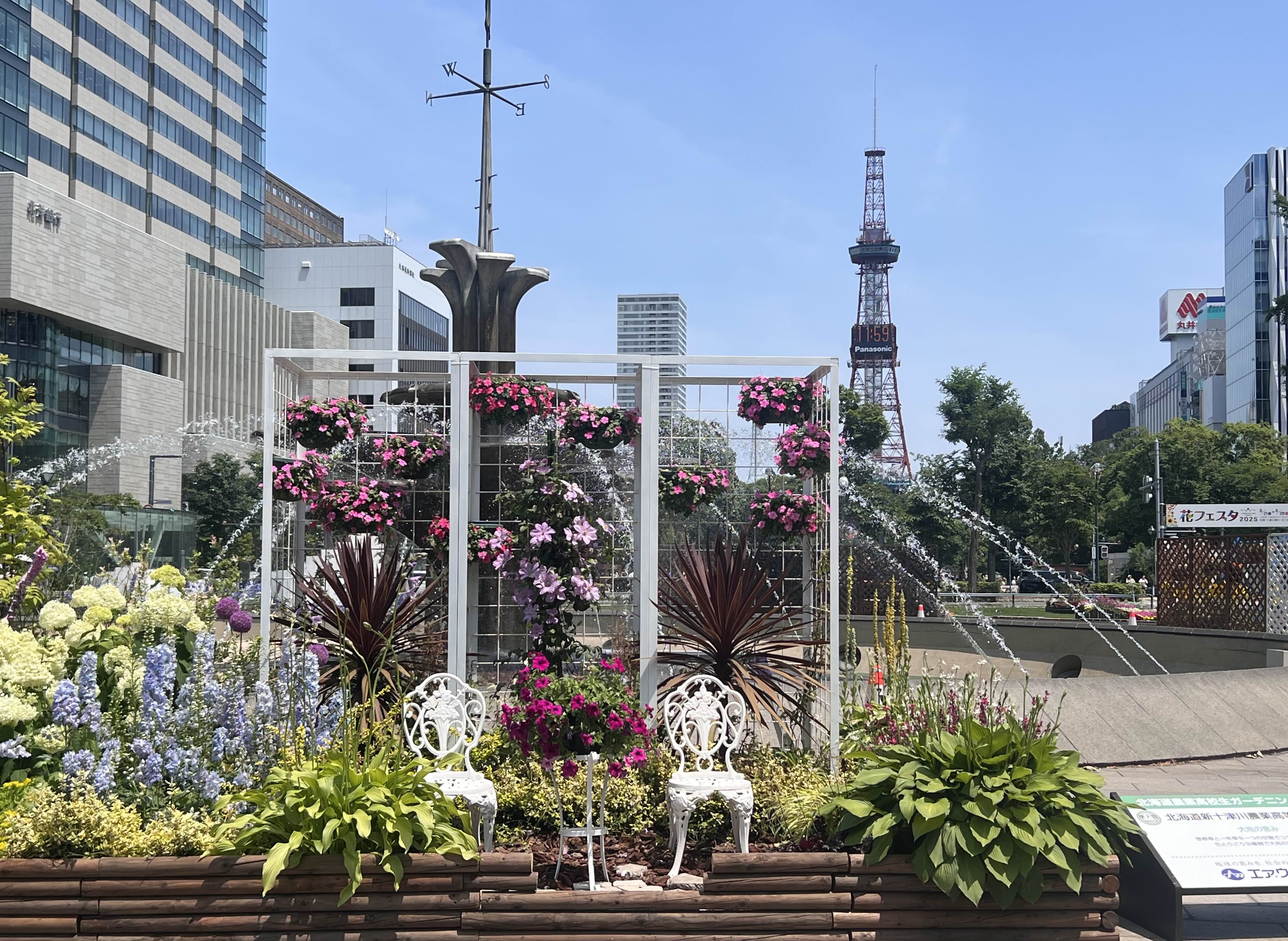 Finally, I arrived at Odori Park. The 'Flower Festival 2025' was being held, and the park was filled with a kaleidoscope of beautiful flowers. The fragrance of blooming flowers wafted through the air, and people gathered on the green lawns, enjoying picnics or leisurely strolls. Being able to spend such peaceful time in a large park within the city felt like a significant advantage of Sapporo. I walked among the flowers, took photos, and then sat on a bench for a while, basking in the warm sunshine.