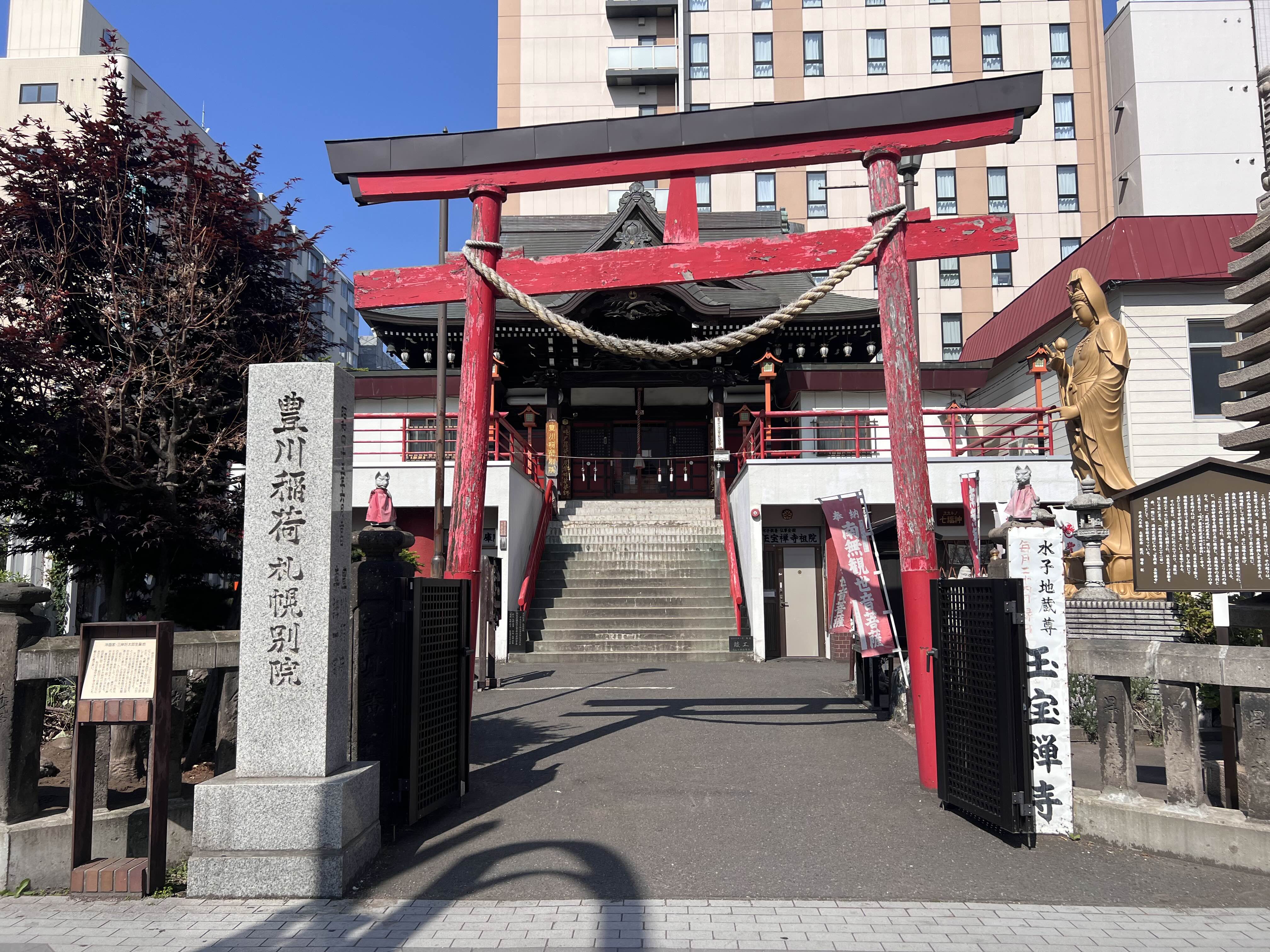 Leaving the beautiful stream behind, I headed towards Odori Park, and another unexpected sight unfolded before me. It was an unnamed temple with an impressive red torii gate. The tranquil and solemn atmosphere of the temple presented a different charm compared to the vibrant city. I paused for a moment to admire the temple's architecture and surroundings, feeling the unique Japanese ambiance. Passing under the red torii and entering the temple grounds, a sense of calm enveloped me, as if I had entered a different world.