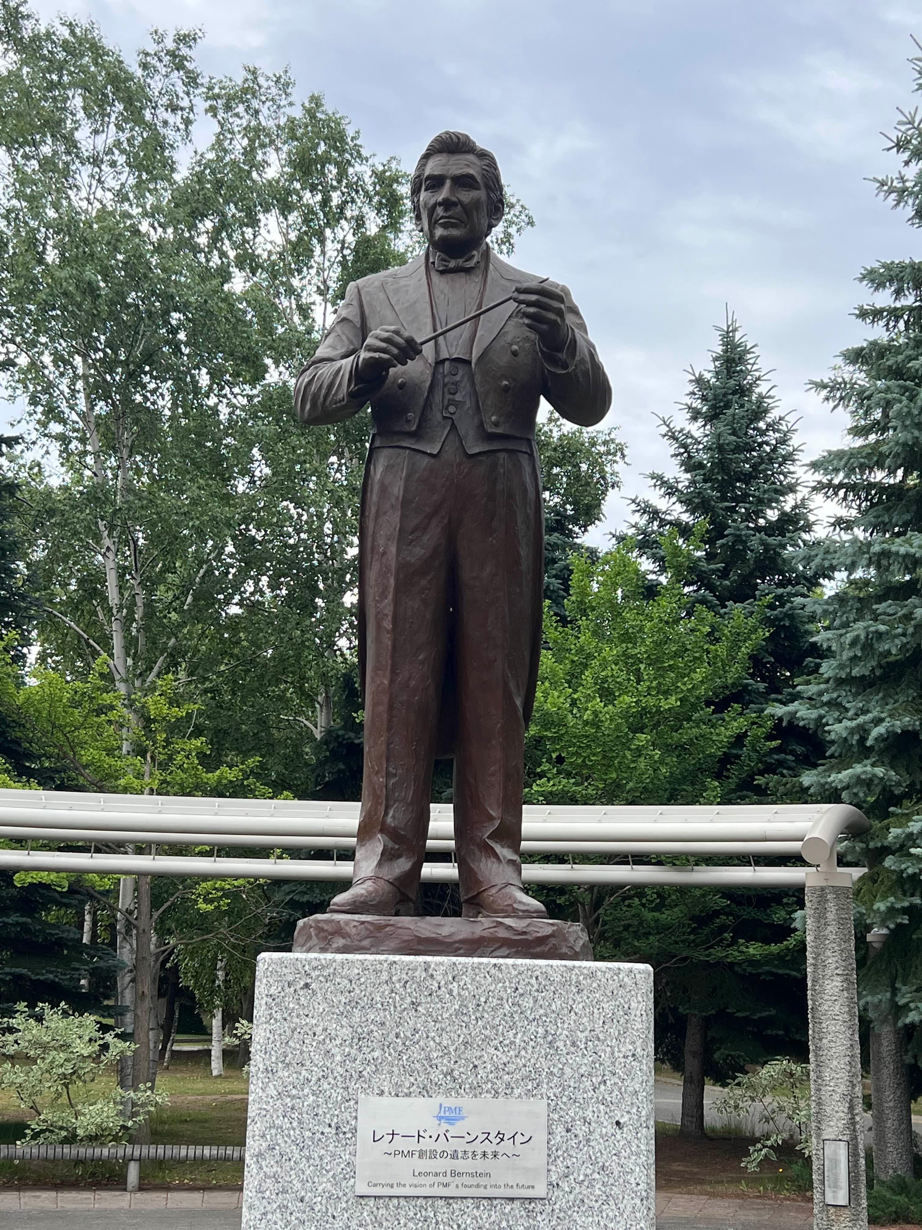 On the third morning of my Sapporo trip, I headed to Nakajima Park for a refreshing stroll. The park was peaceful in the early hours, and my steps felt lighter as I walked along the tranquil pond. As I circled the pond, a familiar statue caught my eye – none other than the great conductor Leonard Bernstein. I was surprised to encounter Bernstein in Sapporo! It turned out that the Sapporo Concert Hall was right next to the park, and this very spot was known as 'Leonard Bernstein Place.' I was deeply impressed by Sapporo's cultural depth, honoring Bernstein's musical legacy.