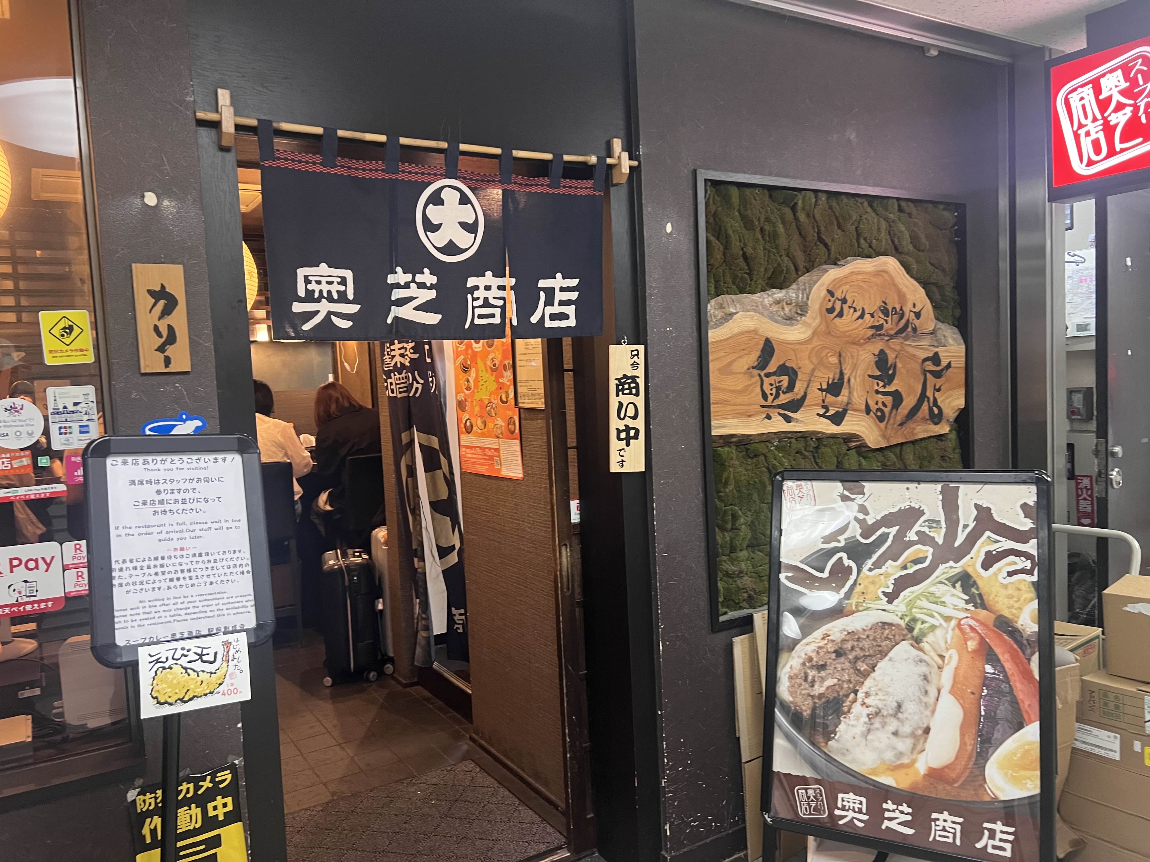 Our long-awaited family trip to Sapporo finally began! Filled with excitement, the first place we sought out for lunch upon arriving in Sapporo was 'Okushiba Shoten,' a strong recommendation from my daughter. In fact, this was my first visit to Sapporo, so everything felt new and exciting, marking the beginning of an anticipated journey. My daughter, who had previously traveled to Sapporo, praised Okushiba Shoten's soup curry endlessly, which made me incredibly curious and excited about its taste even before our trip. As someone who enjoys curry, I was even more eager to try it.
