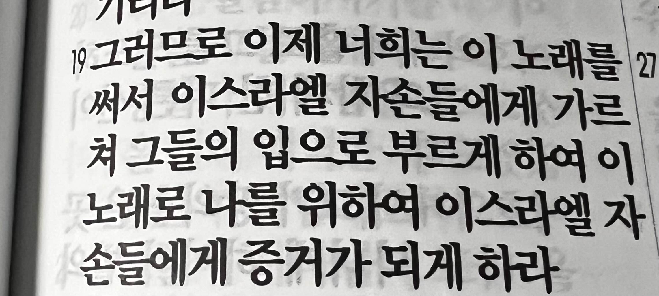 또한, 모세가 이스라엘 백성들에게 노래로 율법을 가르쳤던 일(신명기 32장)도 유목 민족 특유의 구전 문화 속에서 '노래'가 갖는 중요성을 보여주는 대표적인 사례입니다. "이제 너희는 이 노래를 써서 이스라엘 자손들에게 가르쳐 그들의 입으로 부르게 하여 이 노래로 나를 위하여 이스라엘 자손들에게 증거가 되게 하라"(신명기 31:19)는 하나님의 명령은 노래가 단순한 예술 활동이 아니라 신앙 교육의 핵심적인 수단이었음을 분명히 보여줍니다.