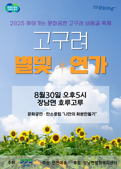 오늘의 공연은 단순한 문화 행사를 넘어, 지역 주민들이 함께 만들어가는 문화의 힘을 보여주는 자리였습니다. 2025년 8월 30일, 장남면 호로고루에 울려 퍼진 '고구려 별빛 연가'는 오랫동안 제 기억 속에 아름다운 별처럼 빛날 것입니다. 앞으로도 '통일바라기합창단'이 더욱 성장하여 많은 사람들에게 희망과 감동을 전해주기를 기대합니다.