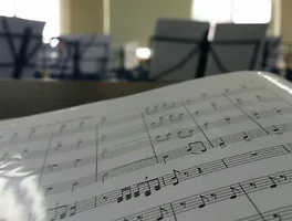 "지휘자님, 플루트 연주자 발 아래에 있는 까만 것은 무엇이죠? 그로웰스가 움직일 때마다 오른쪽 발 근처로 옮겨 놓던데...."(아래 사진 참조)