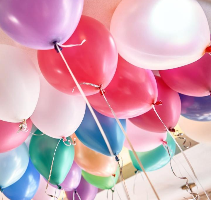 그런 다음 풍선들을 모아서 천정으로 날려 보냈습니다.