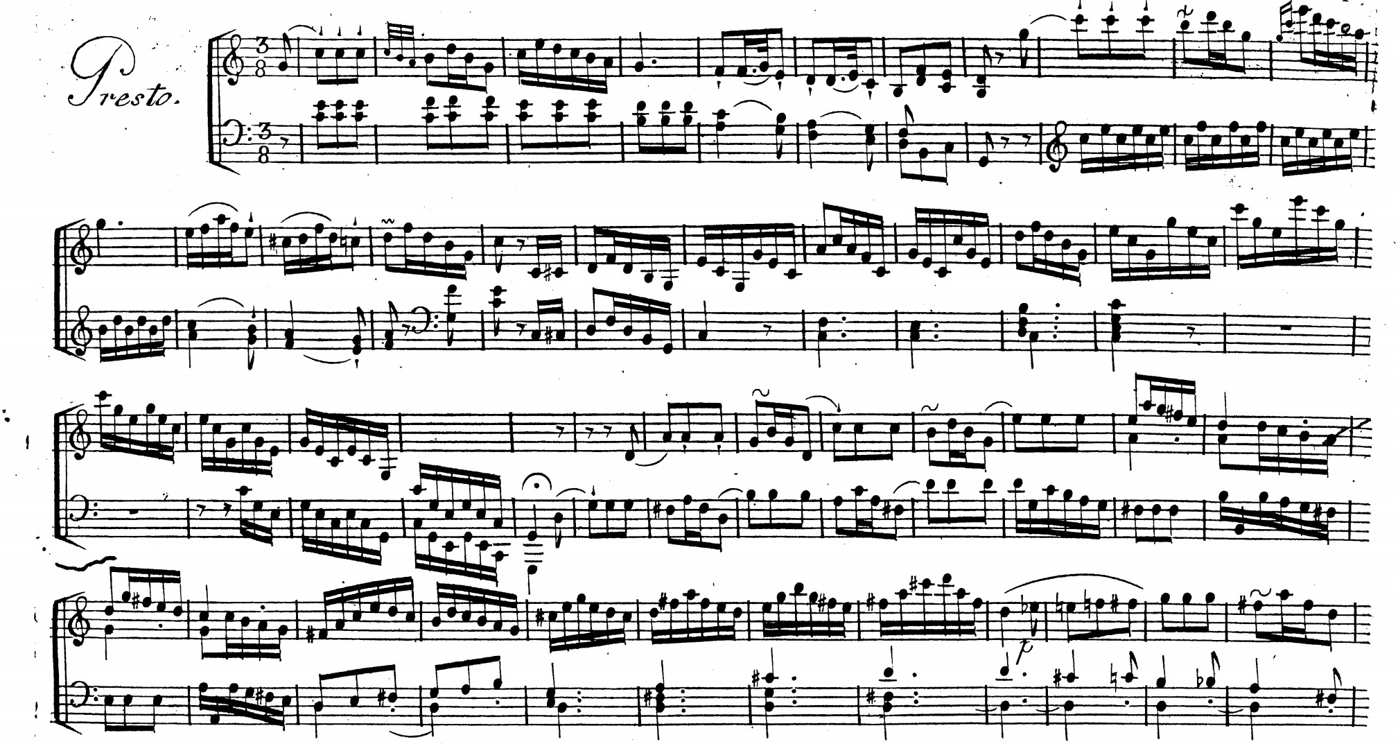 《카프리치오》와 다른 것은 표제 음악 스타일로 끝내고 있다는 점인데, 그 때문에 예를 들면 사냥의 모티브, 뛰어오르는 고양이를 묘사하는 음역의 갑작스러운 변화, 예기치 못한 휴지부, 바음계적 진행 등의 프로그램적 구성을 택하고 있습니다. 이런 음악적 요소들을 화려한 론도형식에 담고 있습니다. 이 곡은 이런 점에서 하이든이 얼마나 뛰어난 건반악기 연주자였는지를 엿볼 수 있게 합니다.