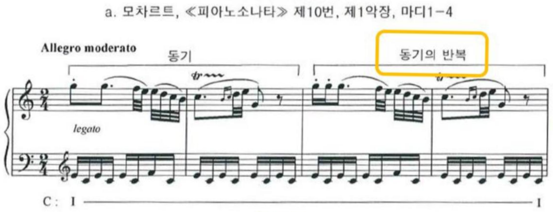 그렇다면 반복이라는 것이 앞의 구성요소를 항상 동일하게 일치시켜야 하는 것일까? 꼭 그렇게 분명하게 모든 요소를 반복할 필요는 없는 것이다. 어떤 곡조에서는 악구의 리듬이나 동기만 반복하기도 한다. 반복하는 각 악구의 음정은 똑같지 않아도 리듬형이 동일하다면 그 반복 선율은 균형이 있는 통일감을 제공한다. 그리고 어떤 경우에는 악구에 어떤 요소를 첨가 내지는 삽입하여 확장한 후에 반복하거나, 악구를 축소하거나 생략하여 반복하기도 한다.