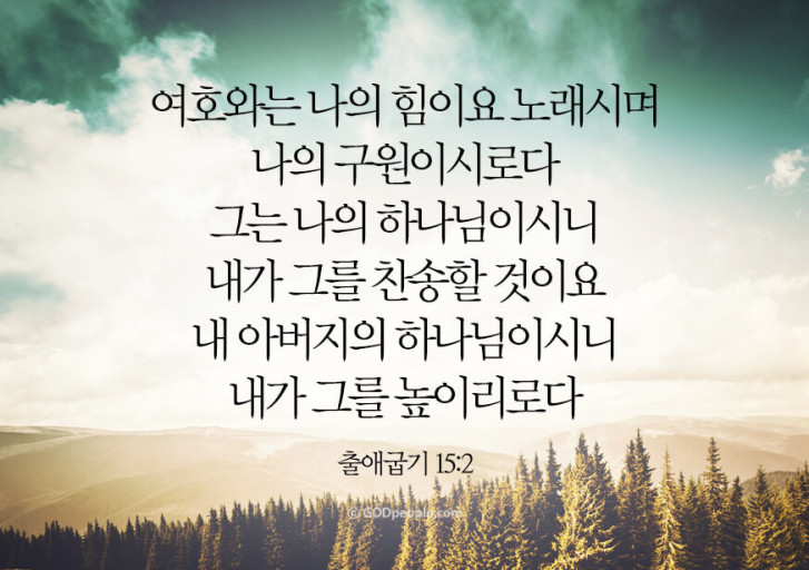 여호와는 나의 힘이요 노래시며 나의 구원이시로다 그는 나의 하나님이시니 내가 그를 찬송할 것이요 내 아버지의 하나님이시니 내가 그를 높이리로다” - 출애굽기 15장1절~2절