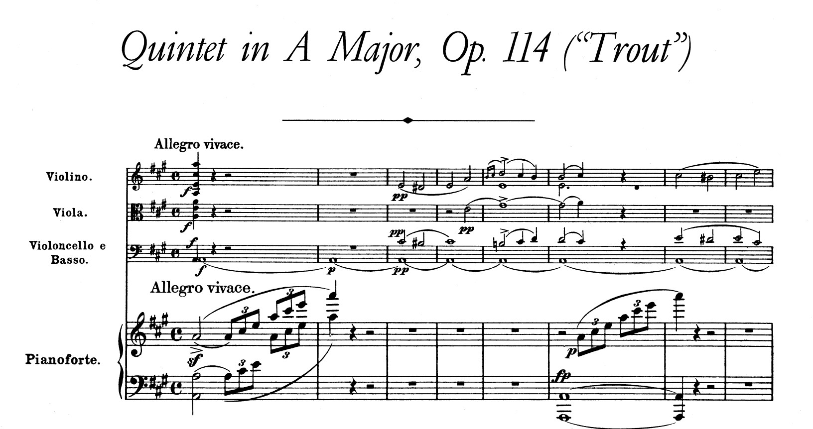이 곡이 《송어》라고 불리는 이유는 제4악장이 1817년 봄에 작곡된 가곡 《송어》의 선율을 주제로 한 변주곡이기 때문이다. 전체를 통하여 신선하고, 농촌을 연상시키는 상쾌한 기분이 넘쳐 흐르는 곡으로 그 참신함은 더 이상 강조할 필요가 없다고 생각한다.