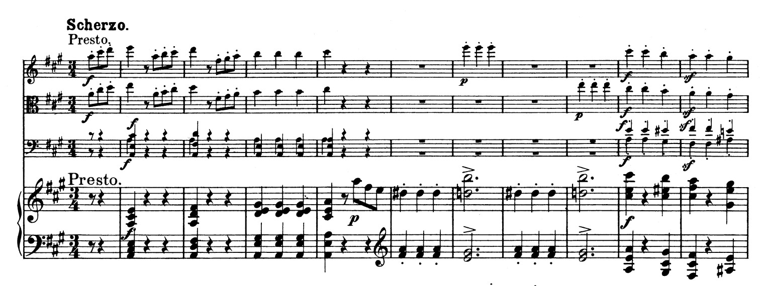 제3악장 스케르초 프레스토, A장조, 3/4박자