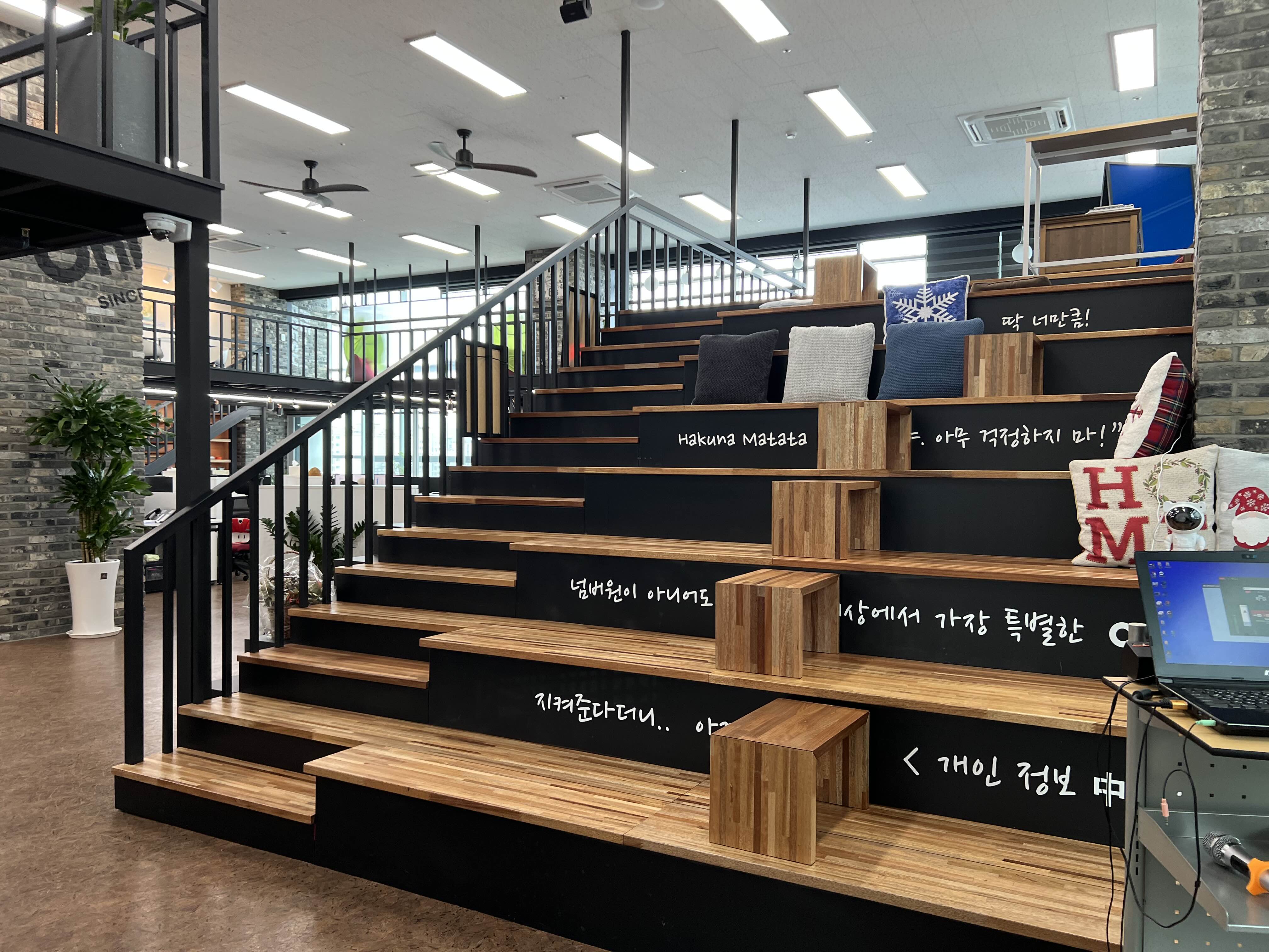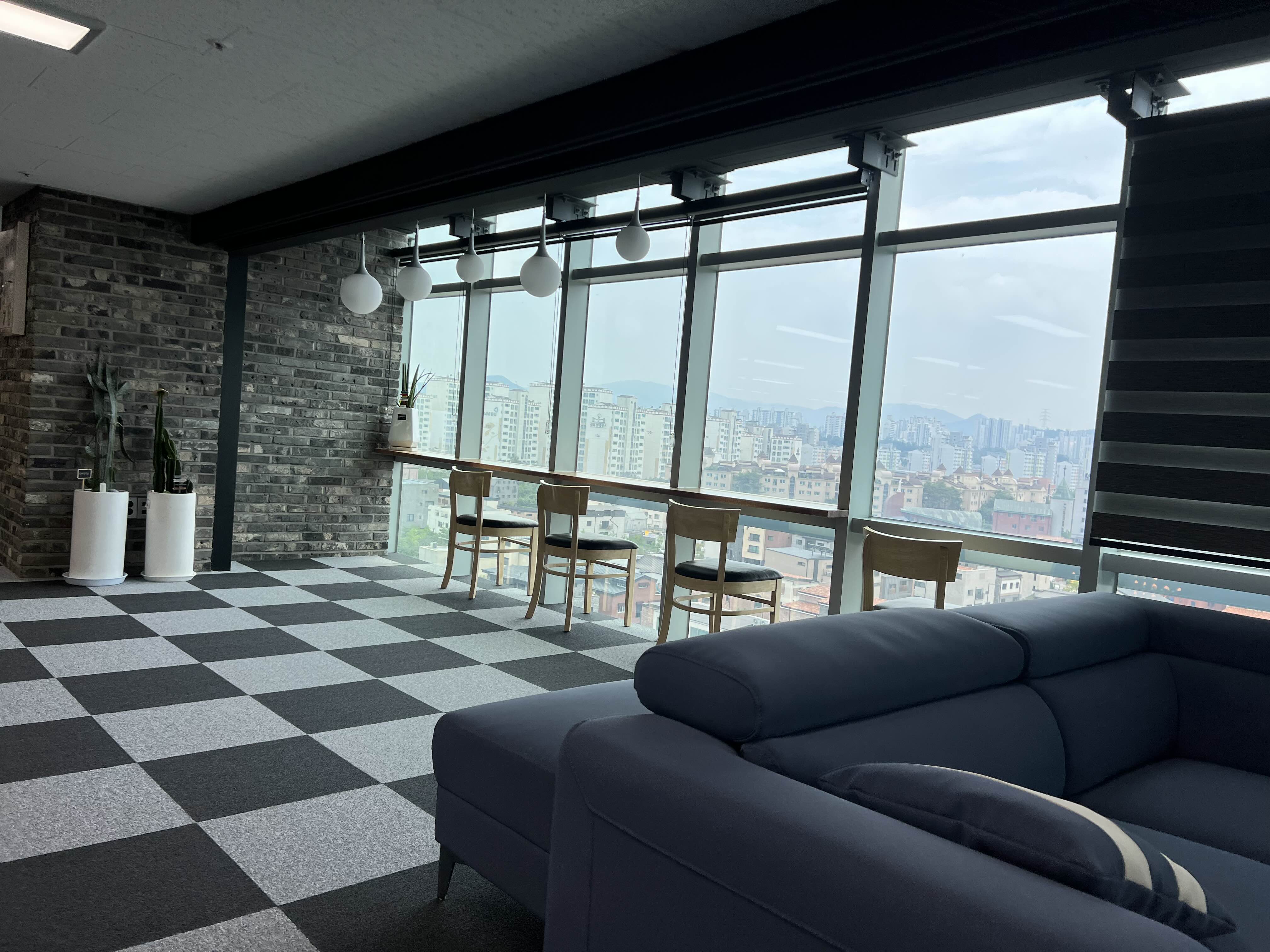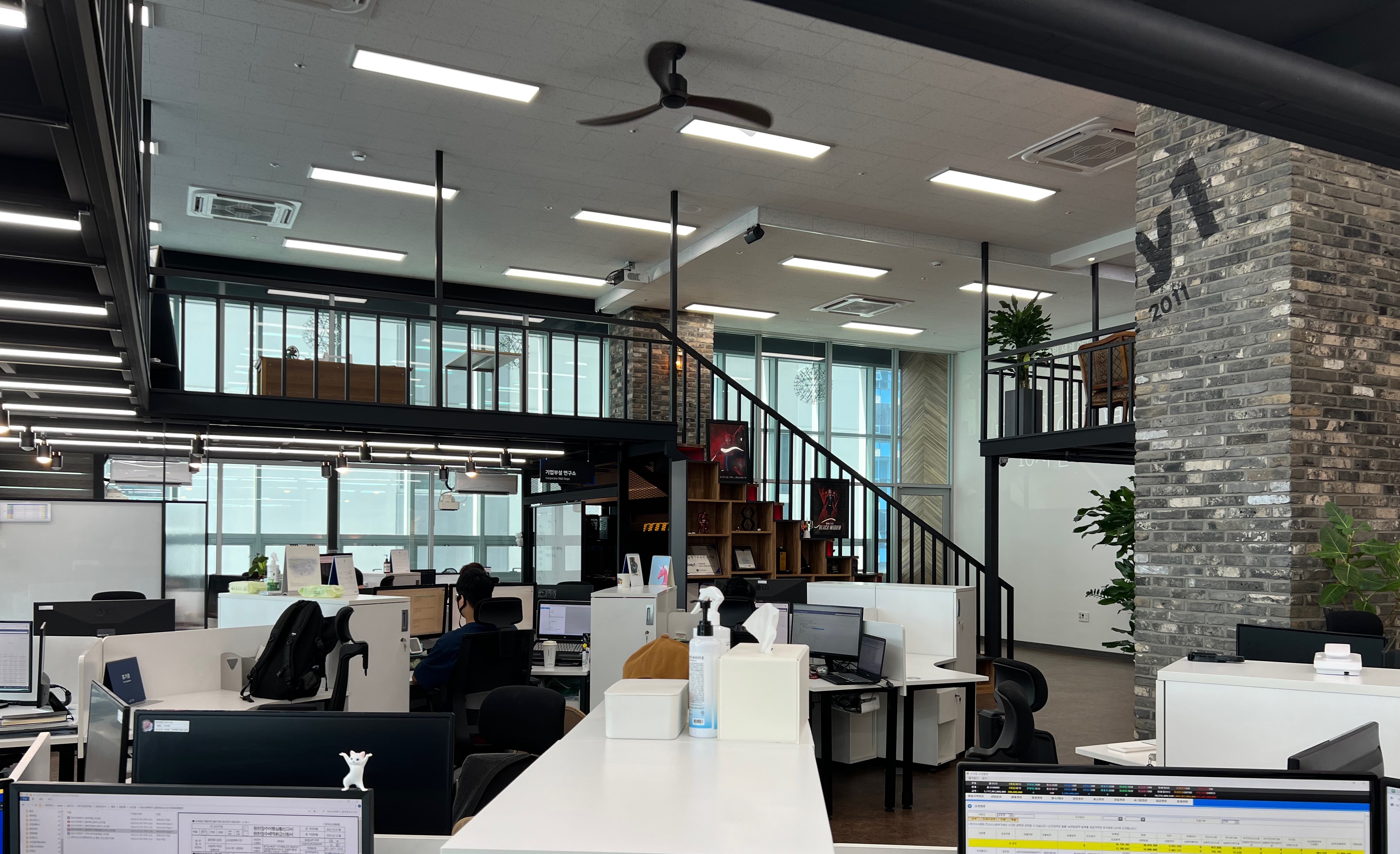 ‘공간이 생각을 바꾼다’는 생각을 가진 대표님은 주변의 만류에도 불구하고 대표이사실이나 중역실을 따로 만들지 않고 전체를 열린 공간으로 마치 카페와 같은 느낌으로 인테리어를 했다고 하네요.