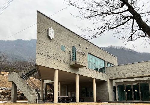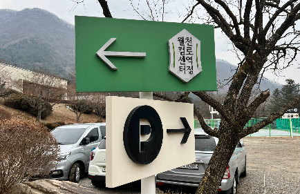 주차장 맞은편 건물 벽면의 환영현수막이 우리를 맞는다.