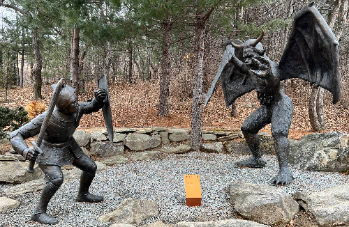 19. 두 사자 : 뷰티풀하우스 앞에 매인 두 사자는 순례자들에게 두려움을 주었으나, 줄에 매인 것을 알린 뷰티풀하우스 경계의 일깨움으로 사자들 사이를 무사히 통과한다.