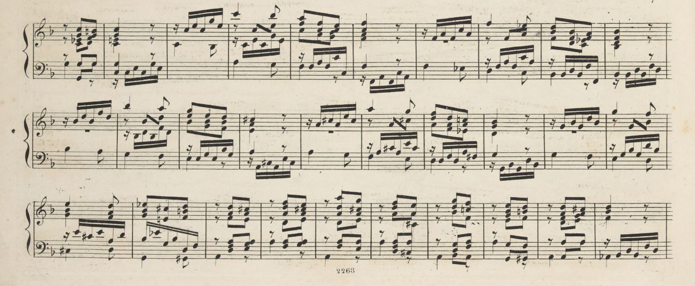 화성적으로도 매우 참신하고 특히 종결부에 있어서의 Gb 장조에의 조바꿈은 더할 나위 없는 대담하고 효과적인 것입니다.