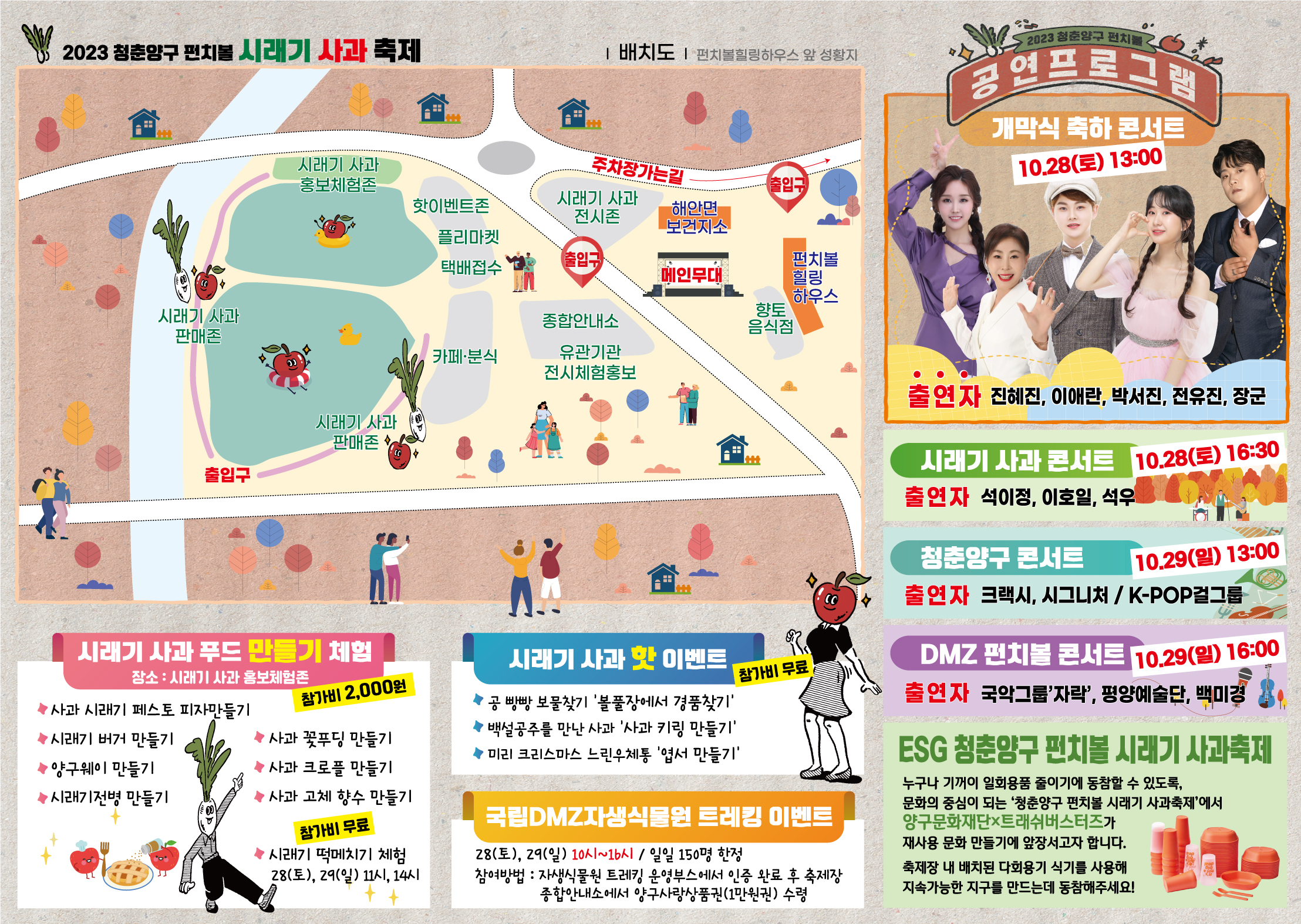 각종 공연과 체험, 홍보·전시, 판매·먹거리 등의