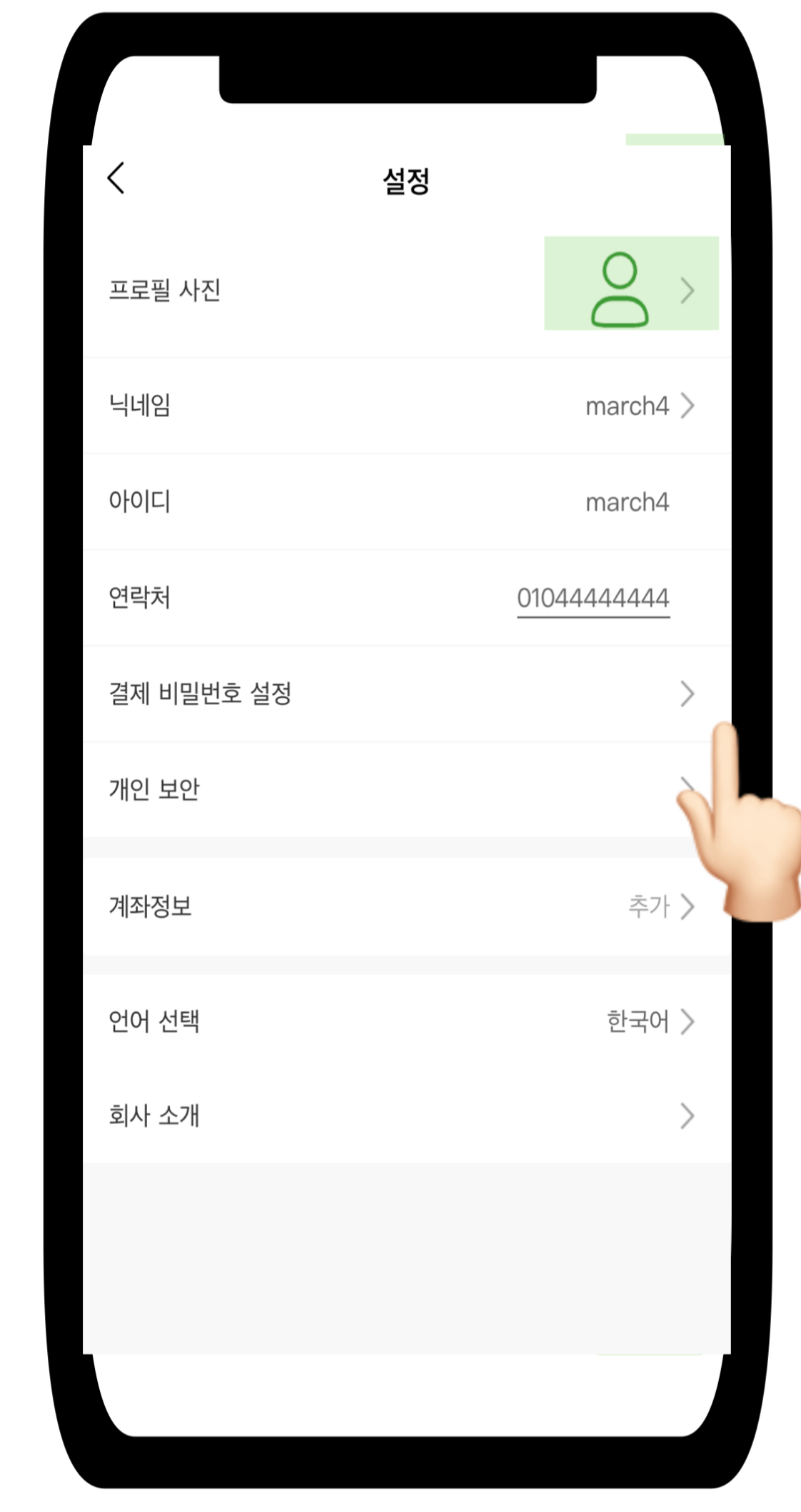 이때 중요한 건 결제 비밀번호 설정과 계좌정보 입력이에요.